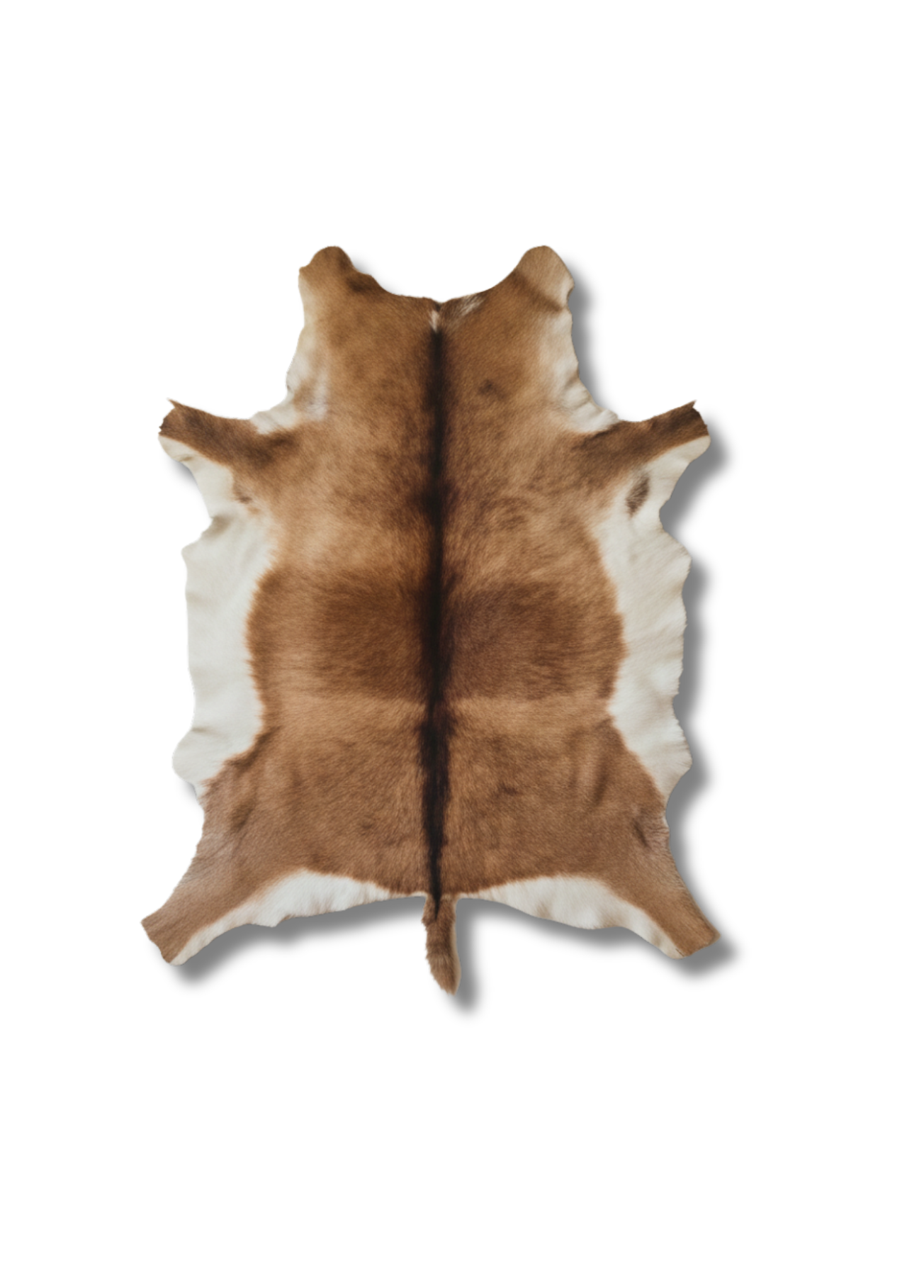 This beautiful hide brings natural warmth and texture into any space. The genuine hair-on piece features a rich gradient of caramel and chestnut tones, framed by soft white edges that highlight its organic shape. A dark stripe runs cleanly down the center from neck to tail, giving the hide a strong, symmetrical line that looks striking whether it is used as a rug, wall hanging, or draped over furniture. The fur itself is short, velvety, and dense, offering a soft feel underfoot or to the touch. Because it is a real hide, each piece has unique markings and variations in color, ensuring no two are ever exactly the same. Carefully tanned to preserve both the hair and flexibility of the leather backing, this hide is durable enough for everyday home use while still feeling luxurious.